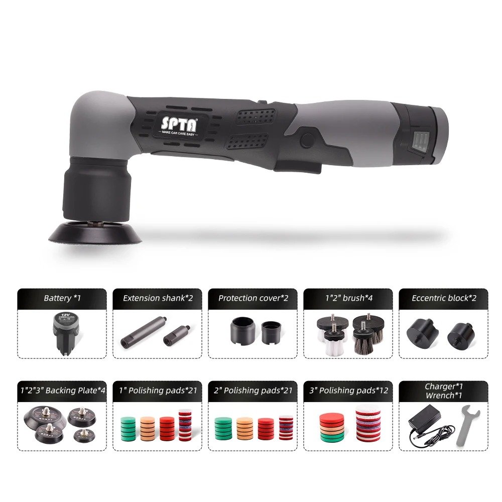Compact, Powerful, and Efficient Equipped with a 12V lithium-ion battery, this mini polisher delivers consistent power with speeds ranging from 2500 to 4500 RPM. Whether you need a gentle touch for polishing badges and body lines or extra power for tougher surface defects, this tool has you covered. Its dual-action (DA) and rotary (RO) polishing capabilities give you the flexibility to handle various tasks with ease.