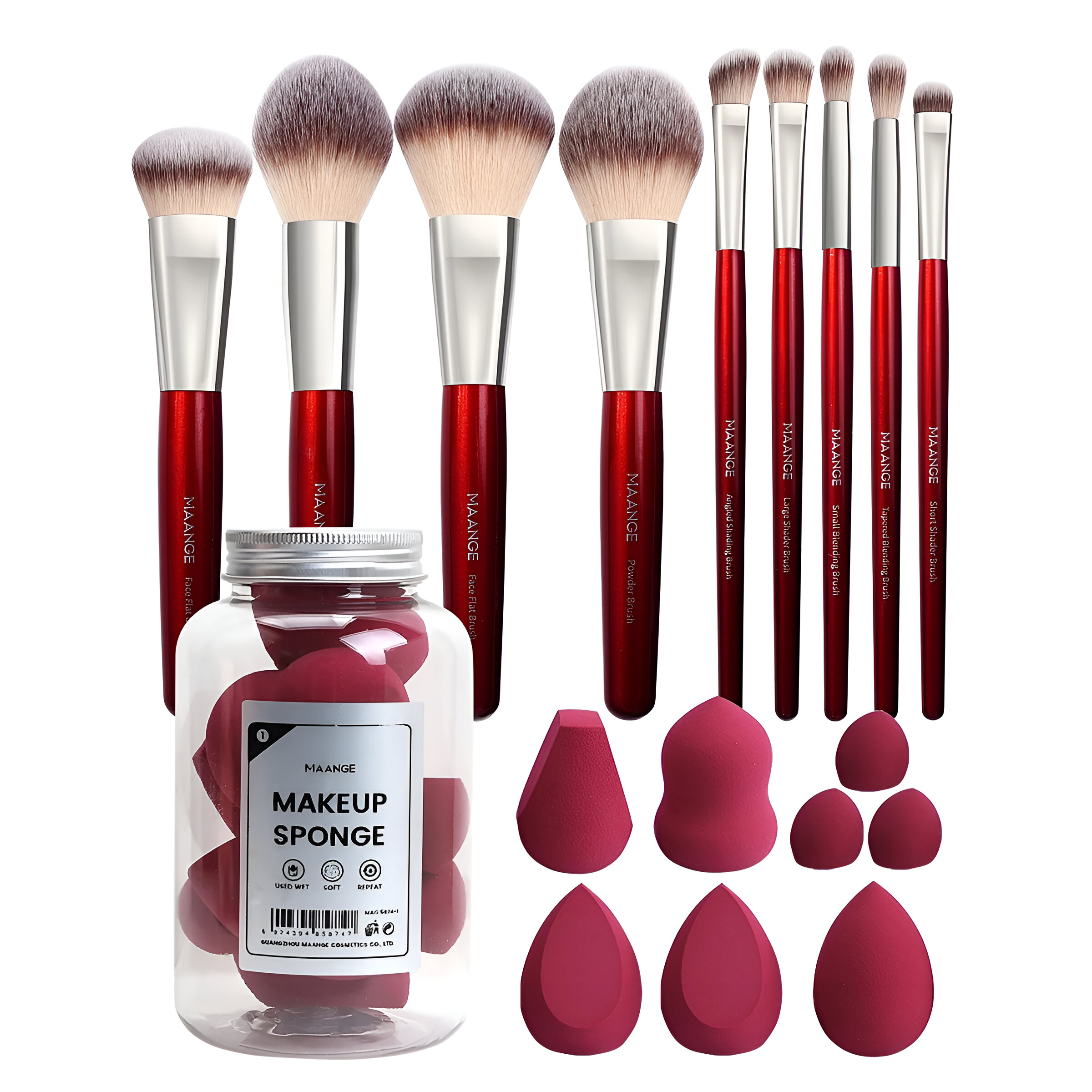 17-Piece Makeup Brush and Sponge Set for Foundation, Eyeshadow & Blending