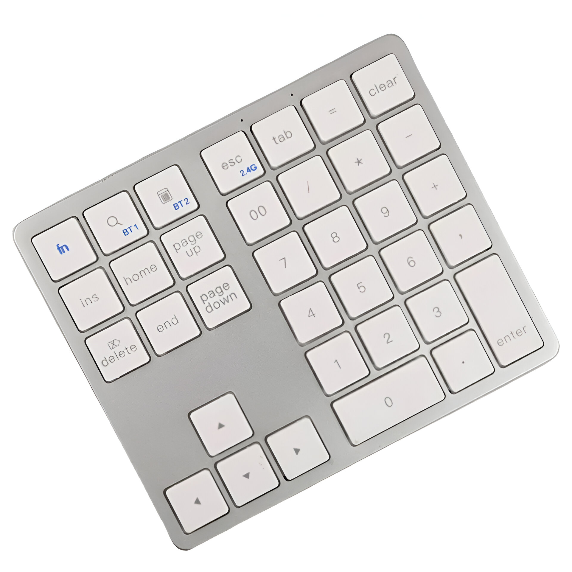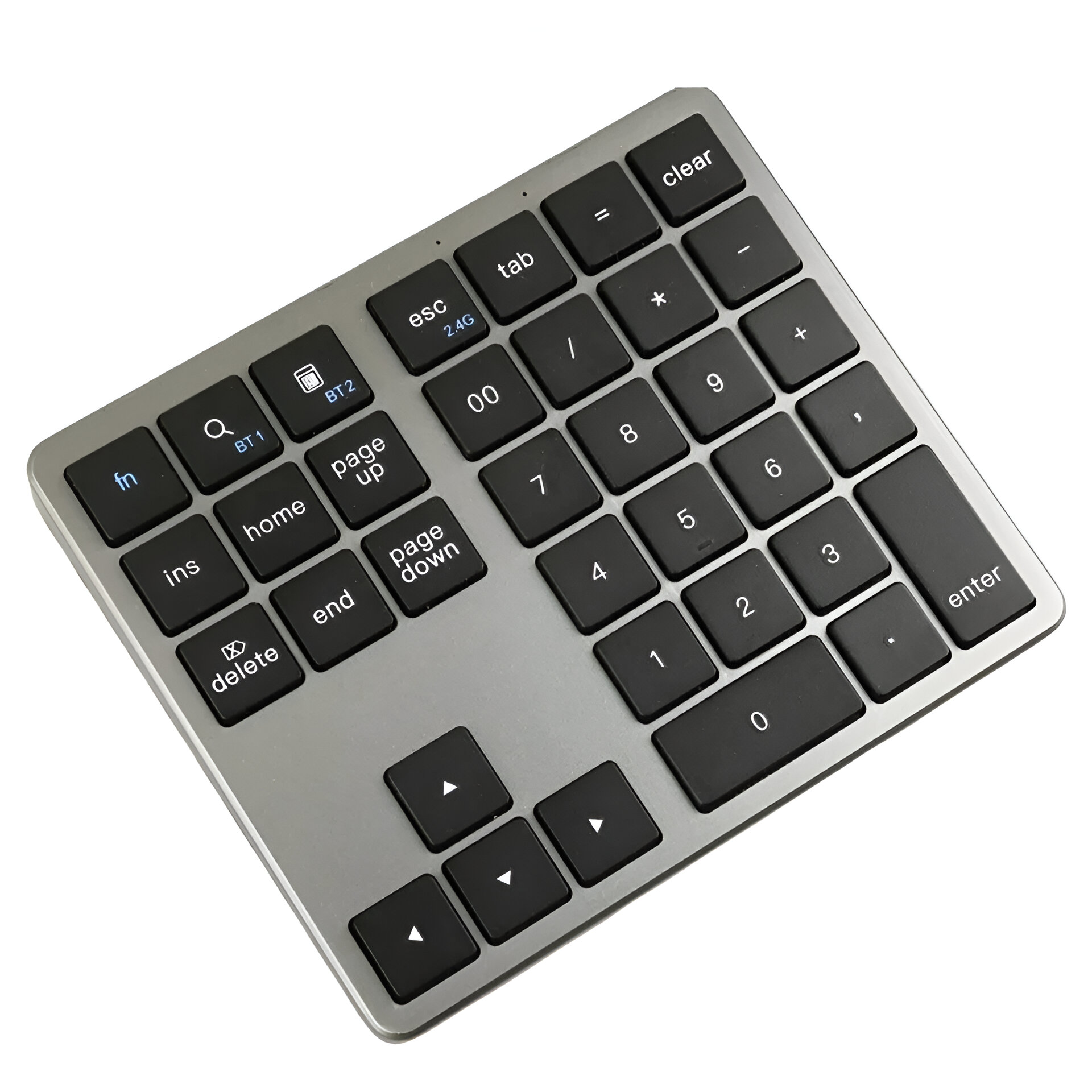 Designed for professionals, students, and anyone who needs a convenient number pad for quick data entry, the keypad is equipped with a dual connection mode: Bluetooth and 2.4GHz wireless, ensuring you always have a reliable connection up to 32 feet (10 meters). With a sleek, ergonomic design and a comfortable typing experience, this keypad delivers the perfect balance of portability and functionality.