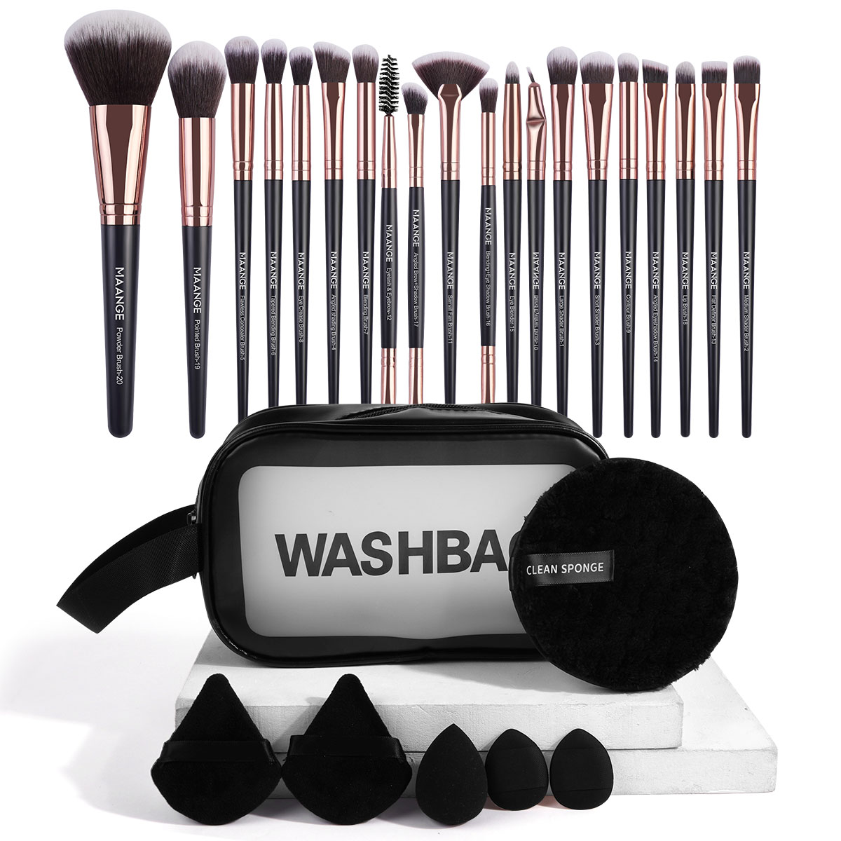 This 27-piece makeup tools set is carefully designed to meet all your makeup needs in one sleek package. Crafted from durable synthetic hair and a sturdy plastic handle, each brush is soft to the touch yet durable for long-lasting use. You’ll enjoy effortless blending, precise application, and smooth finishes. Whether applying foundation, concealer, eyeshadow, blush, or even eyeliner, this kit will become your go-to choice for creating stunning looks.