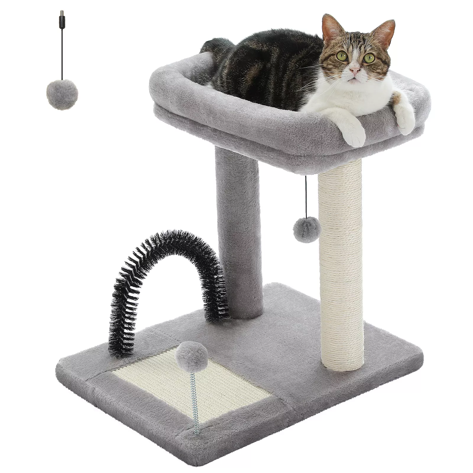 i gotta admit i was skeptical at first but boy am i glad i bought this petite cat tree 😌 it fits perfectly in my studio flat without taking up much space yet provides everything my tomcat needs 👌the large perch gives him his own private spot where he can nap or keep an eye on things from above while the sisal scratching post keeps his claws busy not to mention saving my beloved armchair from being ripped apart 💔 plus there's a built-in grooming brush which means less hairballs around yay 🎉 honestly couldn't be happier with how useful this item turned out
