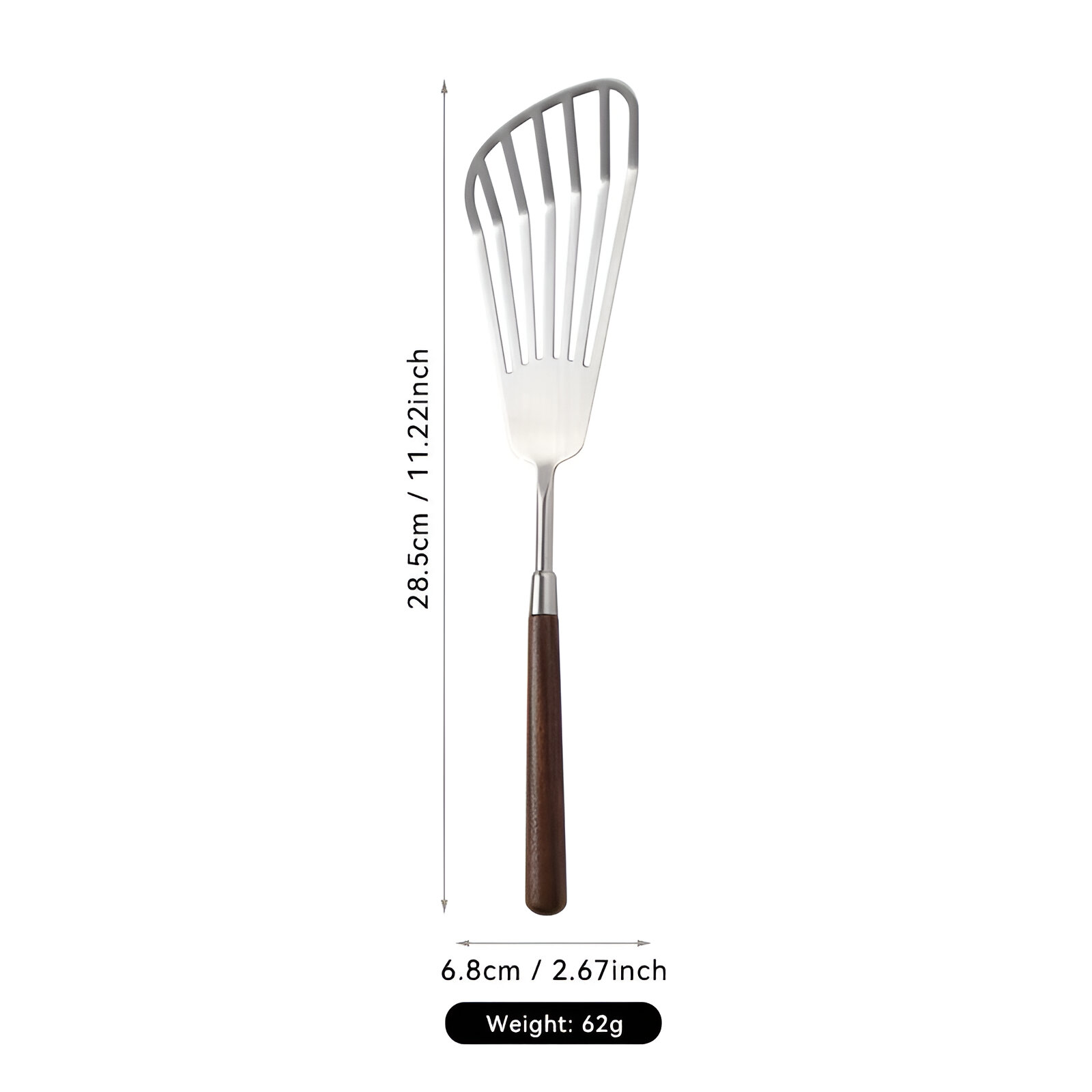 This kitchen utensil set stands out because it combines high-quality materials with an eco-friendly design. The stainless steel construction ensures durability and strength, while the natural wood handles provide a comfortable, ergonomic grip. This balance of functionality and beauty makes the set an essential tool in any kitchen. Not only is it perfect for everyday tasks, but the elegant design also makes it a great gift for home cooks and professional chefs alike.