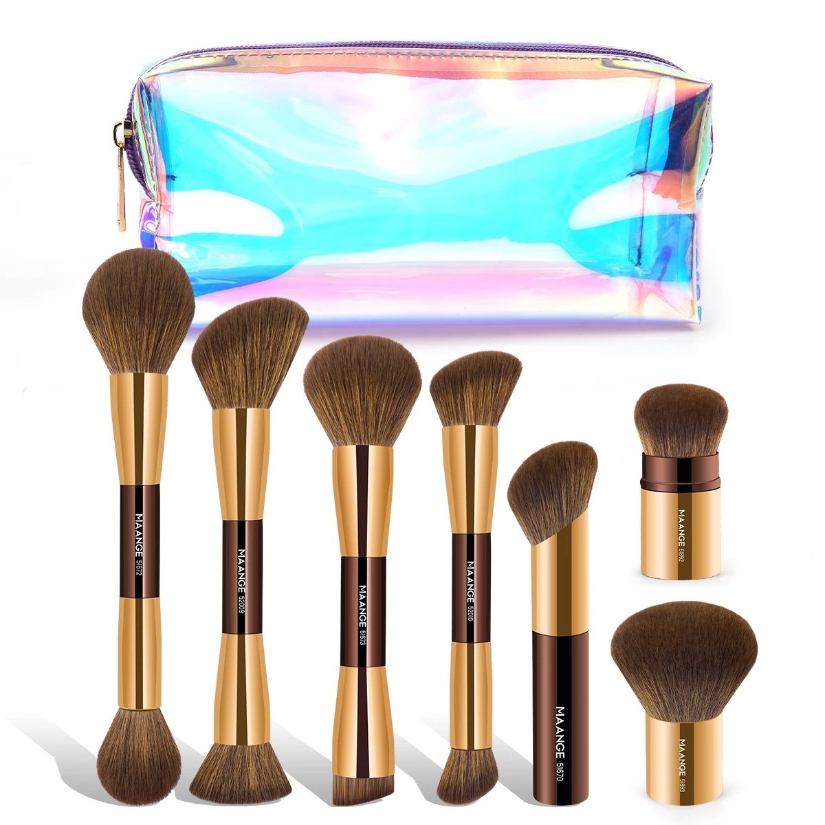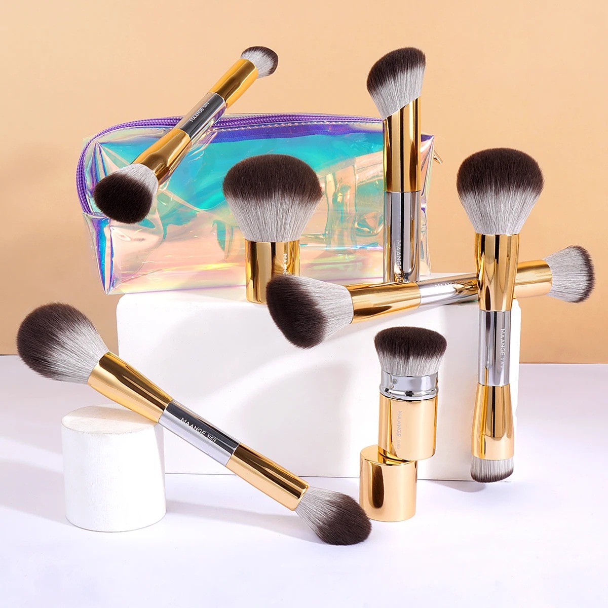 This makeup brush set is a must-have in your beauty arsenal. Its high-quality synthetic fibers ensure a soft and smooth touch on your skin while delivering flawless, even application. The unique dual-end brush design offers flexibility, making it easy to apply foundation, concealer, bronzer, and other face makeup effortlessly. The angled and oblique brush shapes are specifically crafted to help you achieve precision with every stroke, allowing you to contour, highlight, and blend like a pro.