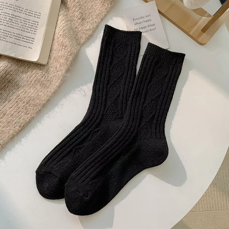 The mid-tube height is perfect for pairing with your favorite boots or sneakers, ensuring that your feet and ankles stay snug no matter where your day takes you. The solid color design adds a touch of sophistication, making these socks versatile enough to complement both casual and more dressed-up looks. Whether you’re lounging at home or out and about, these socks are the perfect blend of comfort and style.