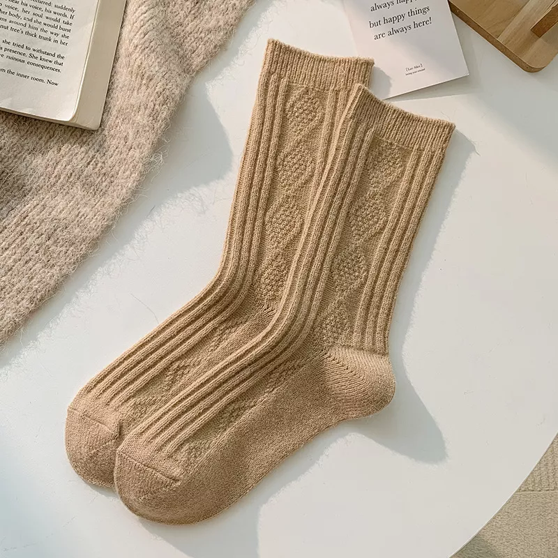 As the temperatures start to dip, there’s no better way to keep your feet warm and stylish than with our Autumn Diamond Check Wool Women’s Mid-Tube Warm Cotton Socks. These coffee-colored socks, featuring a subtle yet elegant diamond check pattern, are designed to bring both comfort and flair to your everyday outfits. Made from a blend of organic cotton and wool, these socks offer just the right amount of warmth without sacrificing breathability, making them an essential addition to your fall and winter wardrobe.