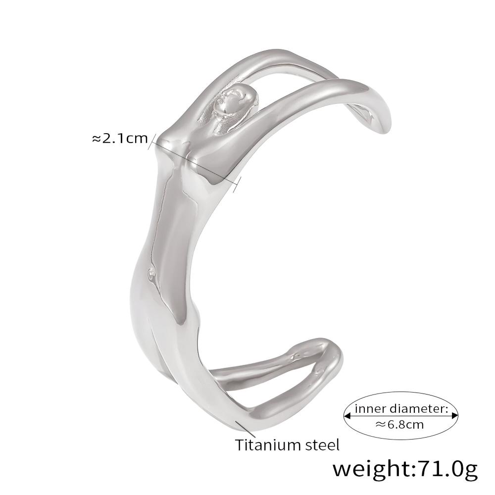 Unlike ordinary bangles, this body cuff combines edgy fashion with refined elegance. Its heavyweight feel and mirror-like shine give you a luxe look that feels just as good as it looks. The minimalist yet bold design makes it ideal for layering or wearing solo as a centerpiece. Perfect for those who love fashion-forward accessories that make a statement without trying too hard.