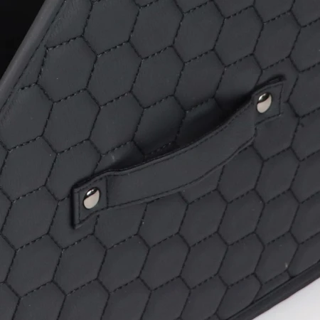 Our trunk organizer features two robust eco-leather handles on its sides, firmly stitched and reinforced with metal fasteners for durability. These handles make it effortlessly portable, ensuring smooth transportation between your car, home, and garage.