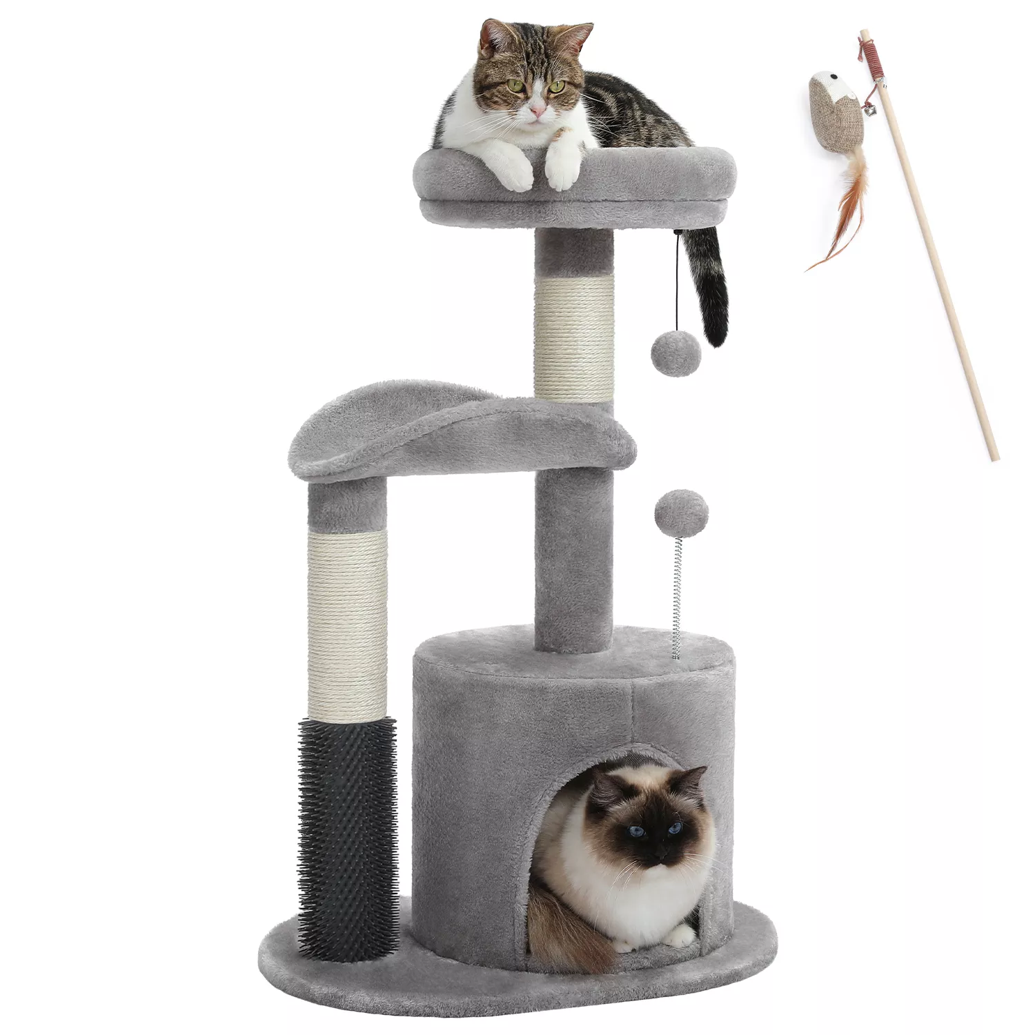 i got this about a month ago for my kittens and boy do they enjoy playing on it daily 😻! while some might say that it could be small for adult cats, i beg to differ as even my larger cat loves spending time here too! the scratching post keeps them entertained (and saves my furniture) while the self-grooming brush is such an ingenious addition; especially since cats are so keen on keeping themselves clean all day long 🧼🐾.