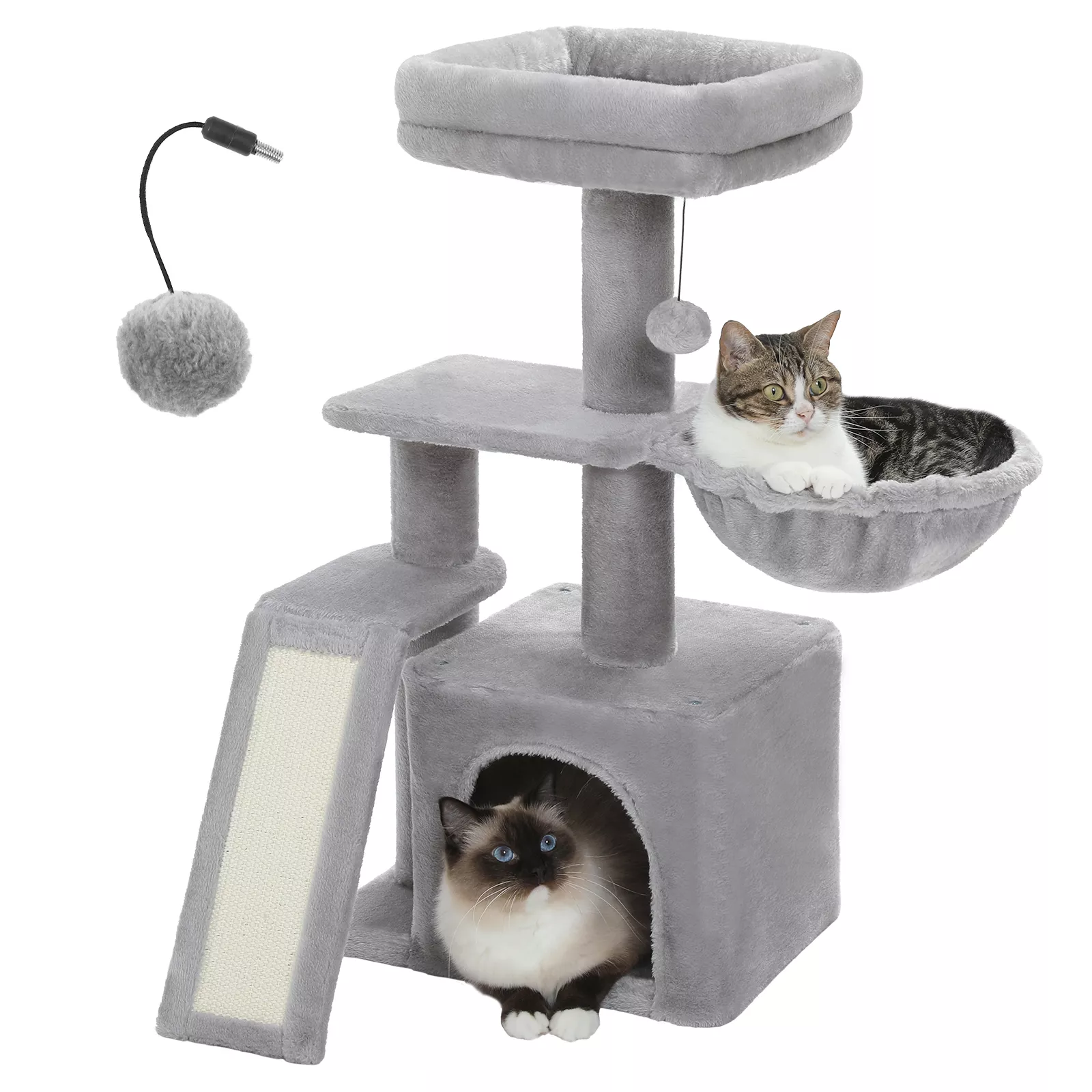 Transform your cat’s indoor environment with this compact 31.5″ Cat Tree Condo, designed to satisfy all your feline’s needs in one stylish structure. Ideal for small to medium-sized cats, this versatile cat tree offers a perfect blend of fun, comfort, and functionality. Whether your cat loves to climb, scratch, or lounge in a cozy nook, this cat tower has it all.