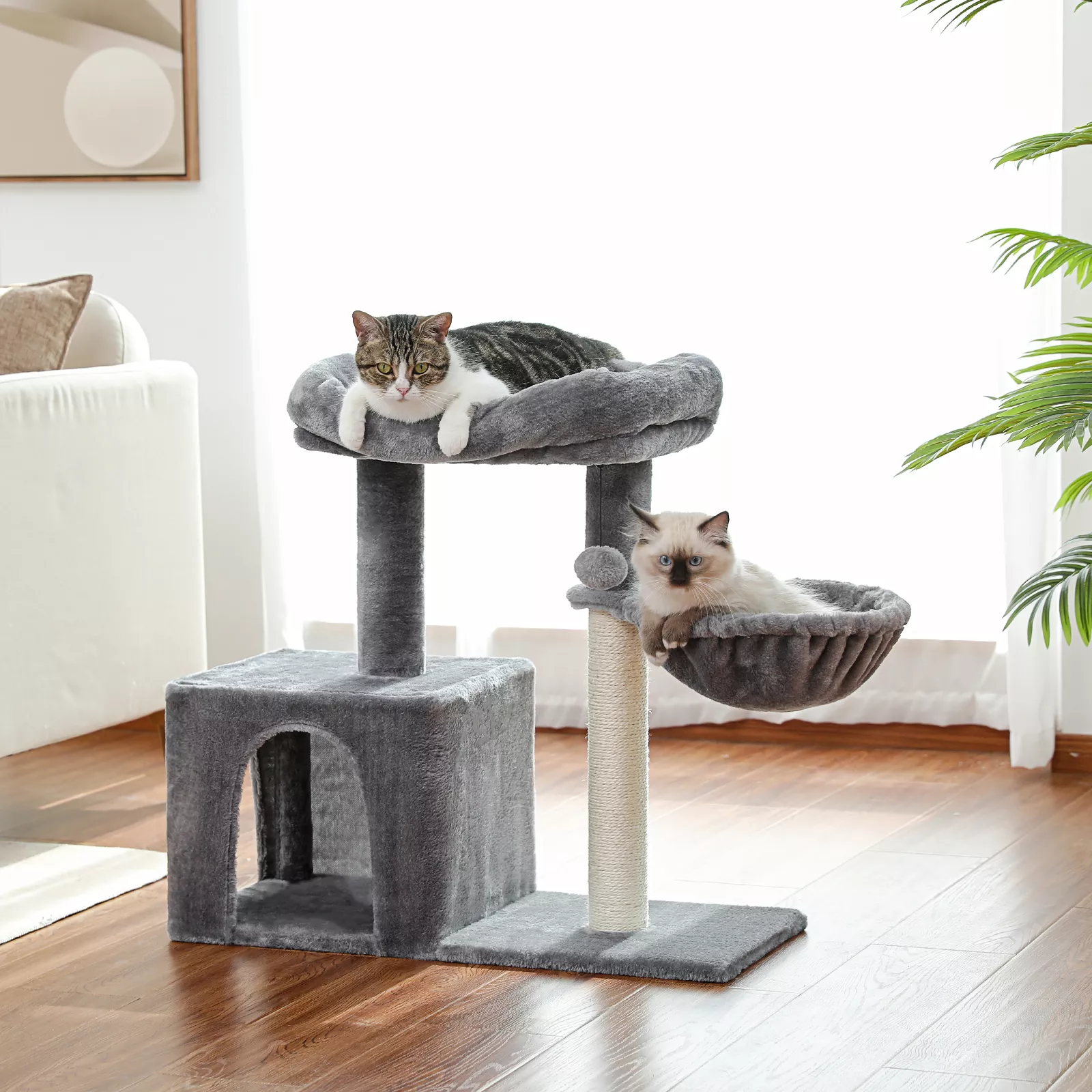 The cat condo offers a secure and private space for those times when your cat needs a little peace and quiet, while the hammock and large top perch provide additional options for lounging. This cat tree is perfect for active cats who enjoy climbing and jumping, as well as those who prefer to watch the world from a comfortable perch.