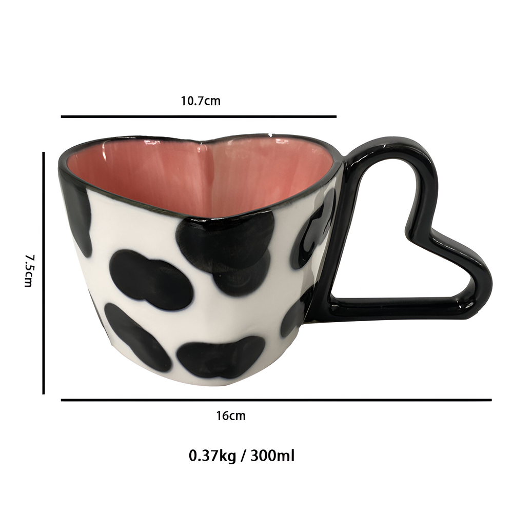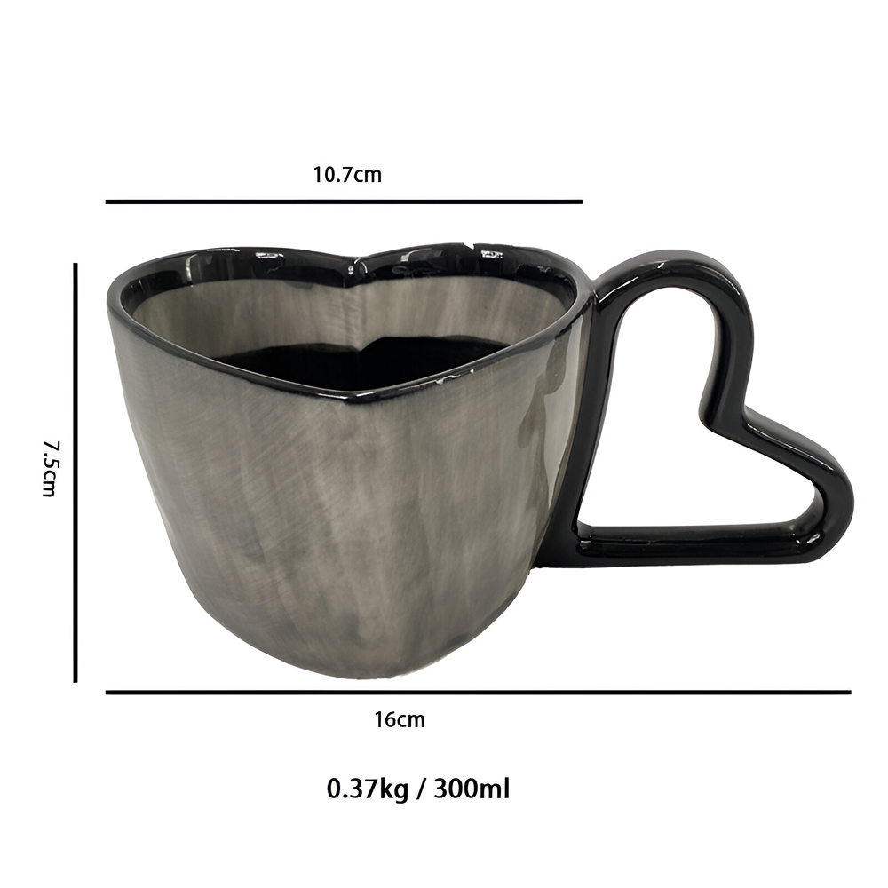 This mug isn’t just a container for your drinks; it’s an experience. The heart-shaped design is eye-catching and fun, making it a lovely addition to any kitchen, office, or dining table. The striped details add a playful elegance, perfect for both casual use and when entertaining guests. Whether you’re having a quiet afternoon tea, a latte during your break, or a warm cup of milk before bed, this mug makes every sip feel special.