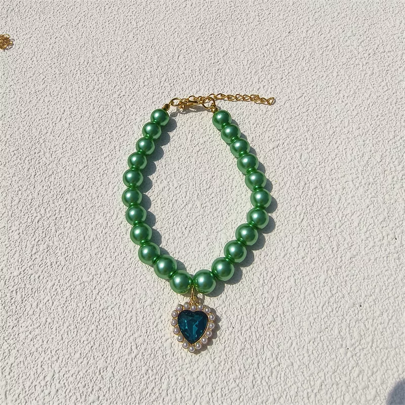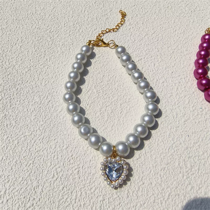 I'm impressed with this purchase; an affordable yet high-quality product. My kitten looks like royalty with these pearls around her neck plus that tiny peach-heart pendant dangling down...it's adjustable too, what more could you ask for?