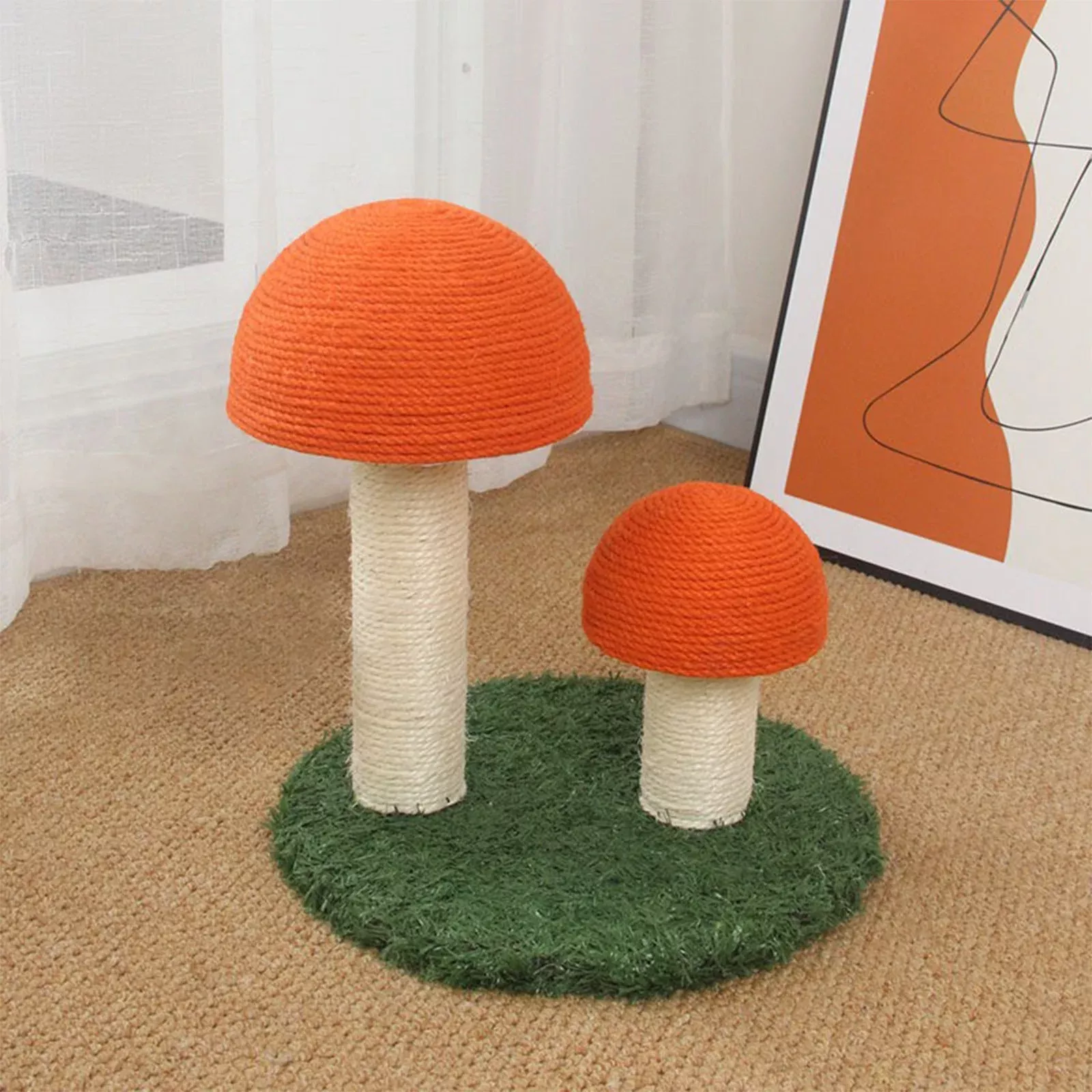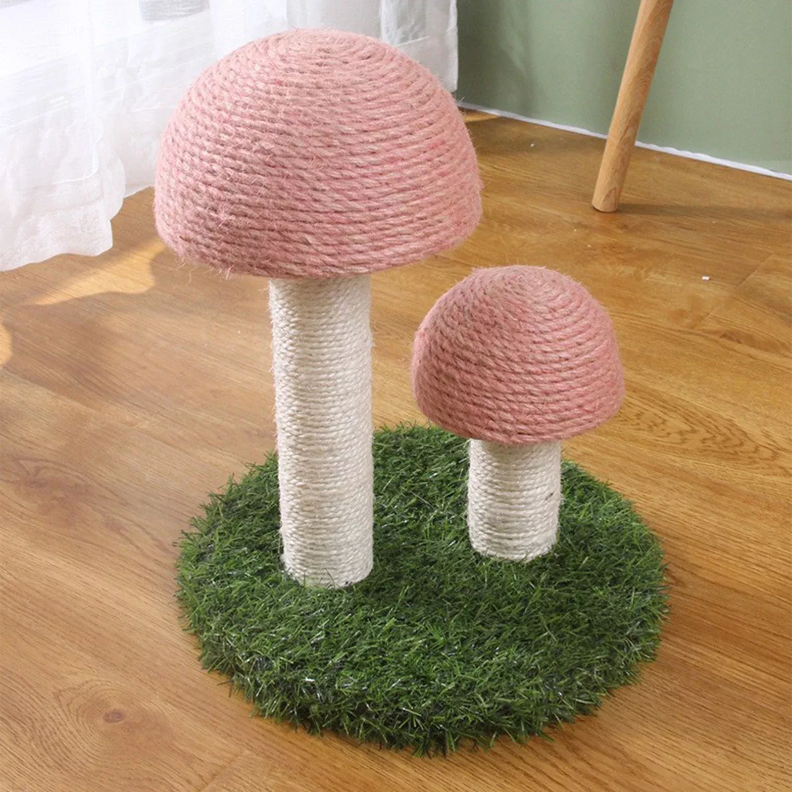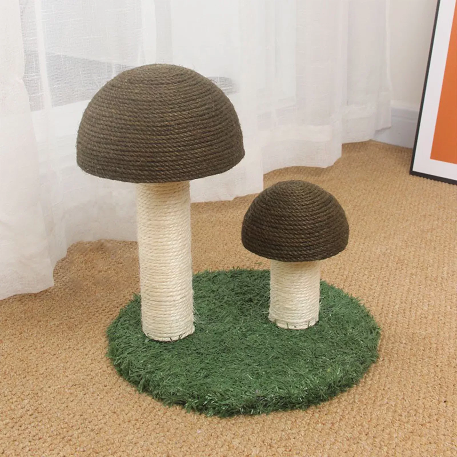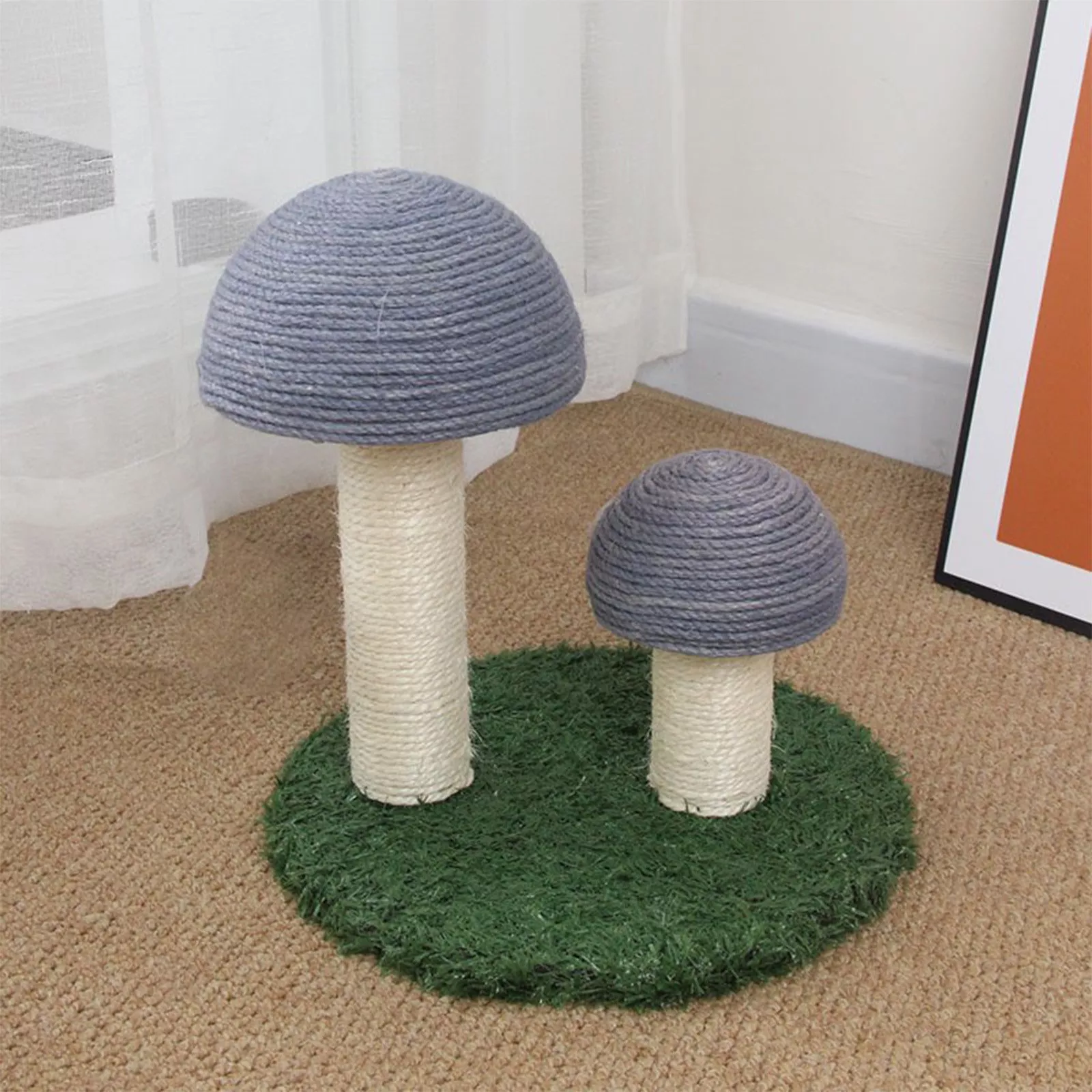 This deluxe cat climbing frame and scratch post has been nothing short of amazing for us. Our cats are obsessed with their new playground - they love scaling up the sturdy structure like little mountaineers before settling down for a nap on top of the mushroom cap! Not only does this provide them with endless entertainment, but it also serves as an excellent tool to keep their claws in check so they're not tearing up our furniture anymore. Moreover, we appreciate how well-crafted and visually appealing this piece is – it adds a lovely touch to our home decor.
