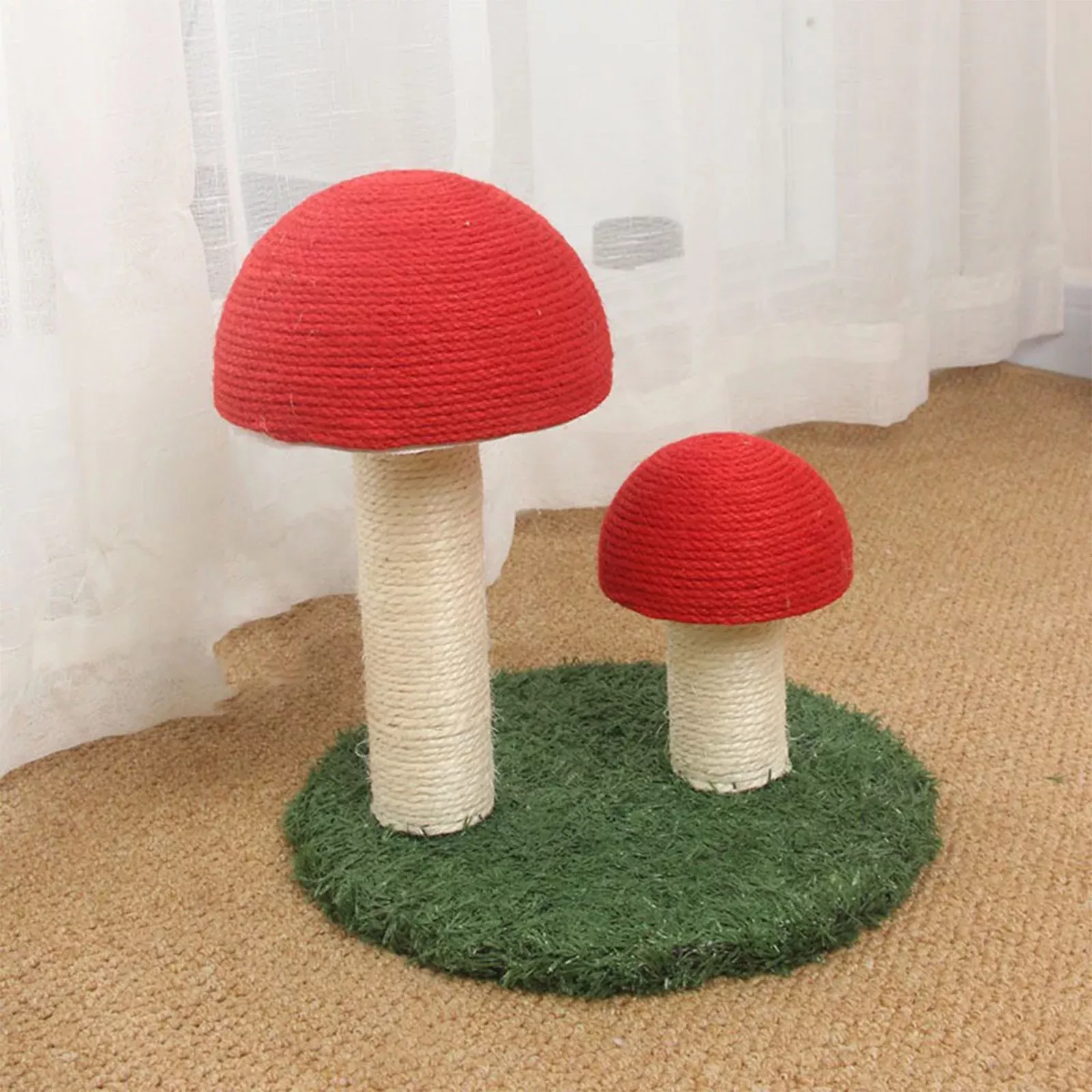 The Deluxe Mushroom Cat Climbing Frame & Scratch Post is more than just a piece of furniture; it’s a playground, a sanctuary, and a scratching post all in one. The three-tiered structure provides ample space for your cat to climb, perch, and observe their surroundings. The sisal-covered posts satisfy your cat’s natural urge to scratch, helping to keep their claws healthy and sharp. The whimsical mushroom design adds a fun and unique element to your home, making it a delightful addition to any room.