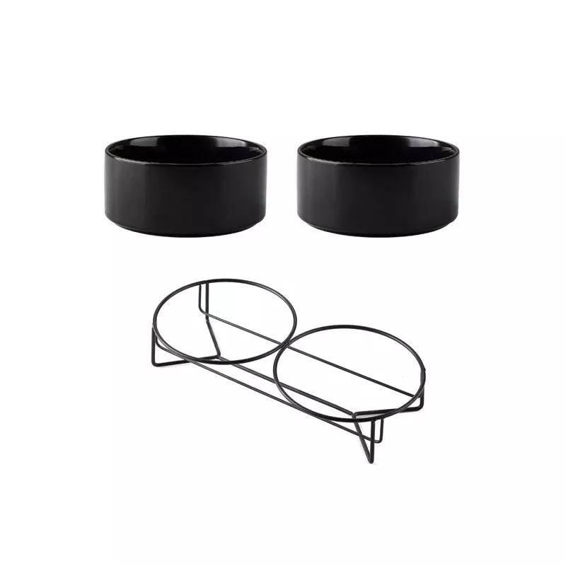 • Double Bowl Design: Two ceramic bowls allow you to serve both food and water simultaneously, making it convenient for you and your pet.