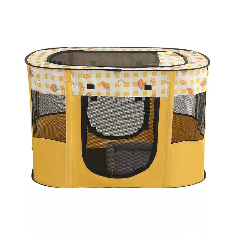 The Foldable Large Cat Maternity Tent is crafted from durable Oxford cloth, ensuring that it withstands daily use while remaining soft and comfortable for your cat. Available in three delightful colors—yellow, pink, and blue—this pet tent not only serves a functional purpose but also adds a touch of style to your home. The large sunroof at the top enhances breathability, creating a fresh and airy environment, while the roller shutter door design allows your cat to move in and out freely.