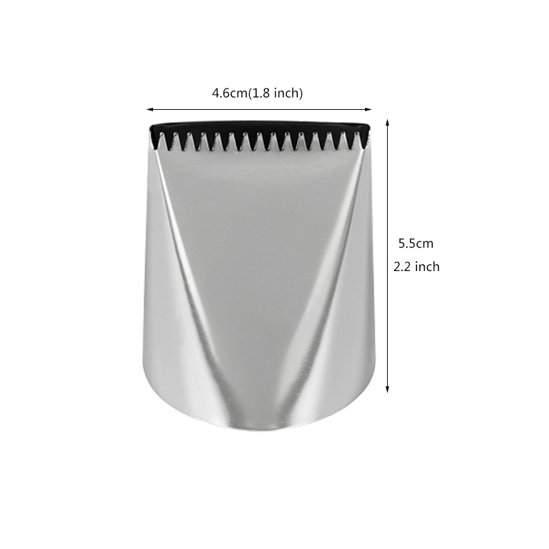 Elevate your cake decorating skills with this large sawtooth pastry tip. Made from high-quality, food-grade stainless steel, this icing nozzle is designed to help you create beautiful, professional-looking cakes, cupcakes, and other baked treats. With its unique sawtooth design, this piping tip ensures a clean and consistent result every time, whether you’re icing cakes, decorating cupcakes, or applying a smooth crumb coat.