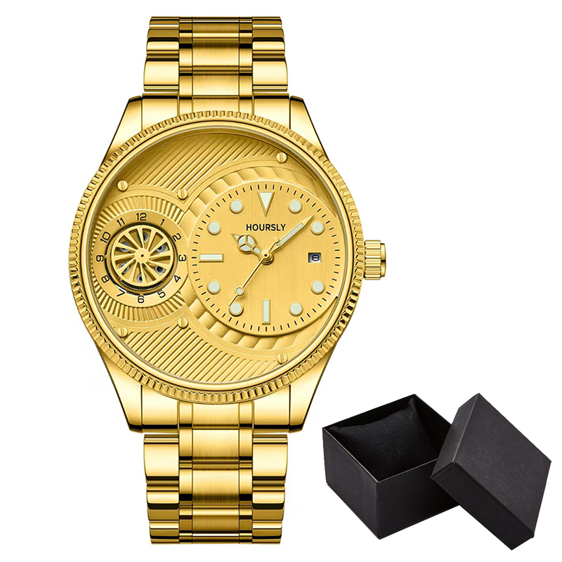 This luxury men’s quartz wristwatch isn’t just a timepiece – it’s a statement. Whether you’re at a business meeting, on a date, or enjoying a weekend outing, this watch is designed to keep up with your lifestyle. Its sleek black and gold tones give it an air of sophistication, while the unique numberless dial makes it stand out from the crowd. The waterproof feature ensures that you can wear it with confidence, without worrying about light exposure to water.