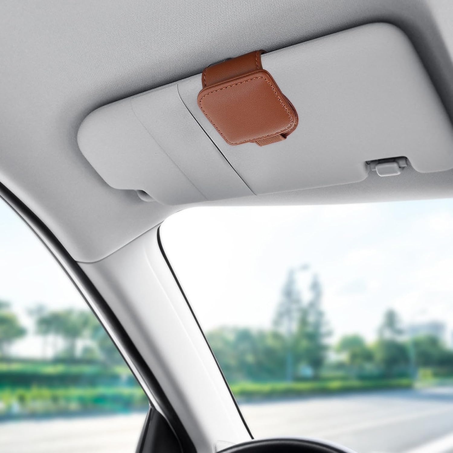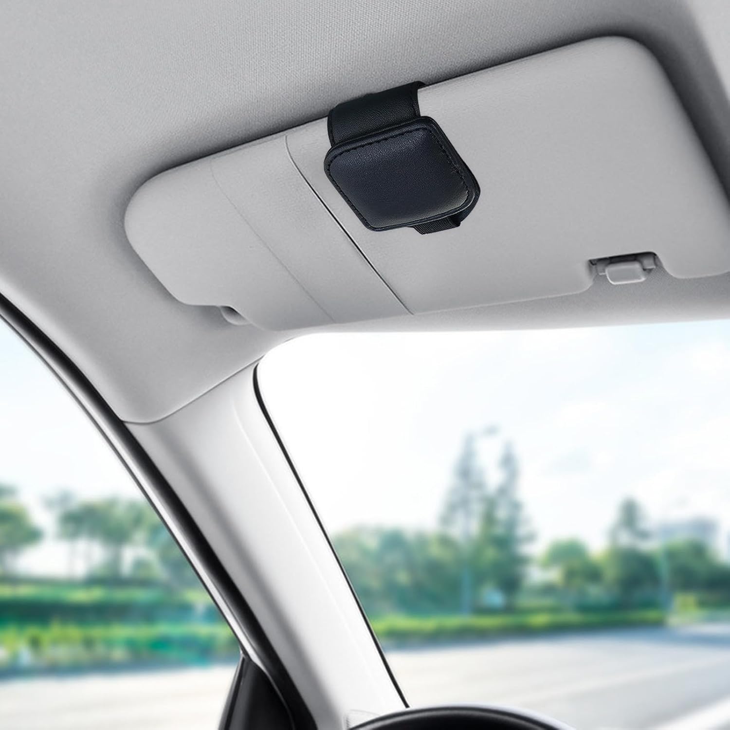 Unlike traditional visor clips, this mini glasses holder offers a sleek design with a strong magnetic closure for better stability. Its premium PU leather finish enhances the aesthetics of your car while providing reliable protection for your glasses. The additional card slot makes it even more practical, helping you keep small essentials organized while driving.