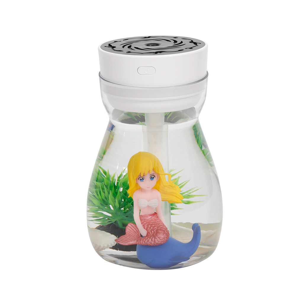 Mini USB Mermaid Air Humidifier with 7 Color Light & Mist Sprayer