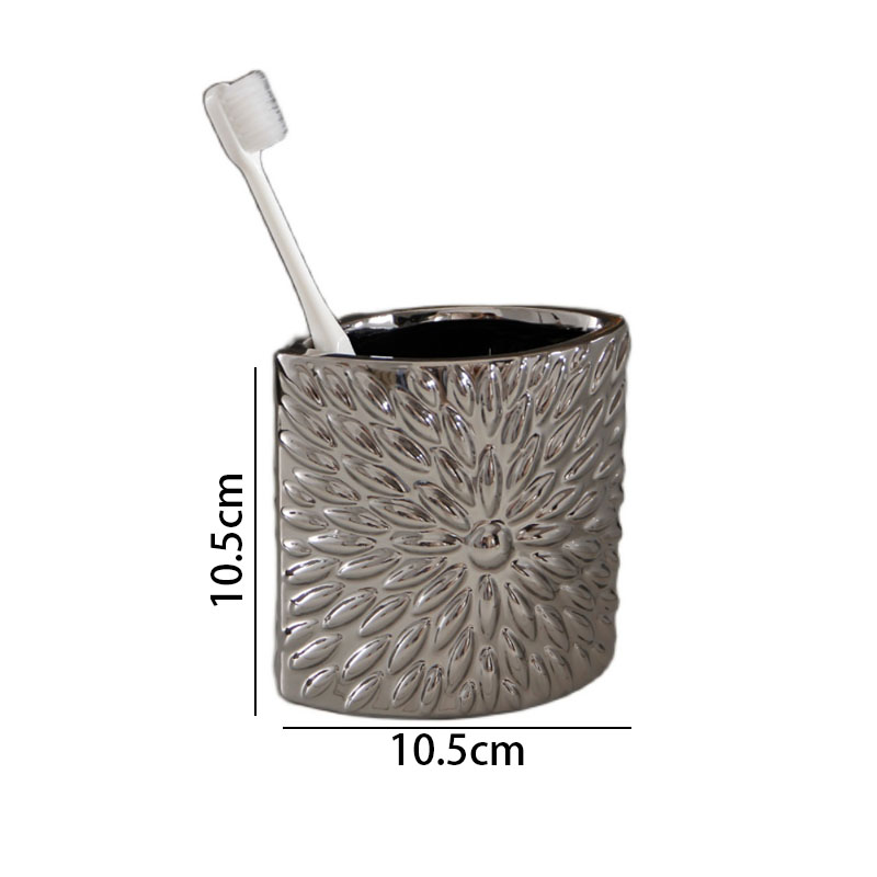 Made from high-quality ceramic, this toothbrush holder is not just a practical storage solution, but also an artful statement that adds beauty to your bathroom space. The shiny silver plating enhances its elegant look, making it an eye-catching fixture whether placed on your bathroom countertop or sink area. This accessory is designed to suit a wide range of bathroom styles, from minimalist to lavish European-inspired interiors.