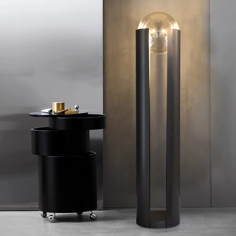 The lamp’s eye-catching design features high-quality glass in cognac or transparent colors, complemented by a sturdy iron base. The LED lighting technology ensures long-lasting, energy-efficient illumination. Its unique shape and elegant glass shades make it a statement piece that effortlessly enhances the style of your room.