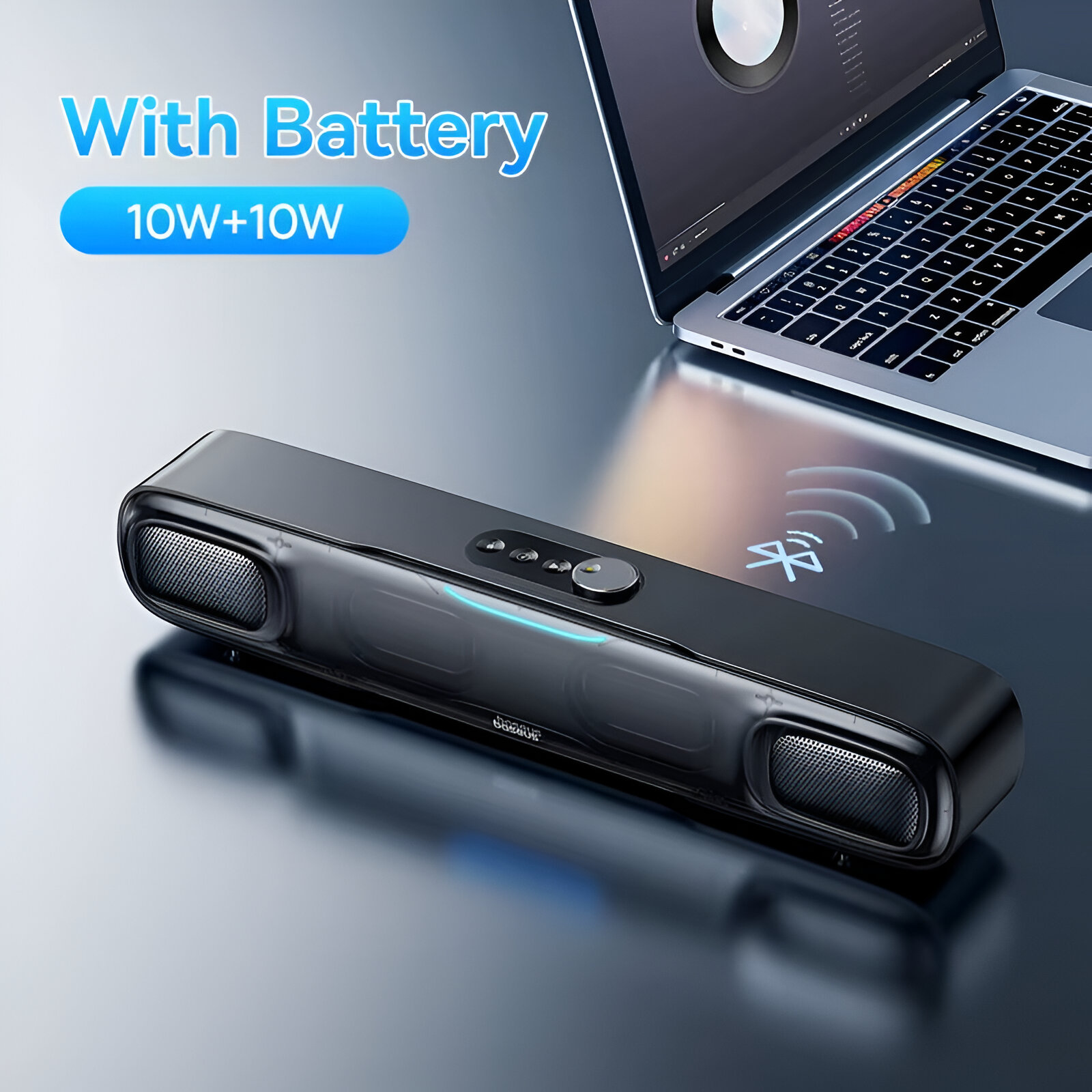 Experience superior sound and vibrant lights with this Portable Bluetooth Mini Soundbar Speaker. Designed to elevate your audio experience, this compact speaker delivers rich bass, crisp treble, and 3D surround sound that fills any room. Whether you’re streaming your favorite shows, gaming, or listening to music, the Soundbar Speaker offers impressive audio quality with powerful bass boost and dynamic RGB lighting that sets the mood perfectly.