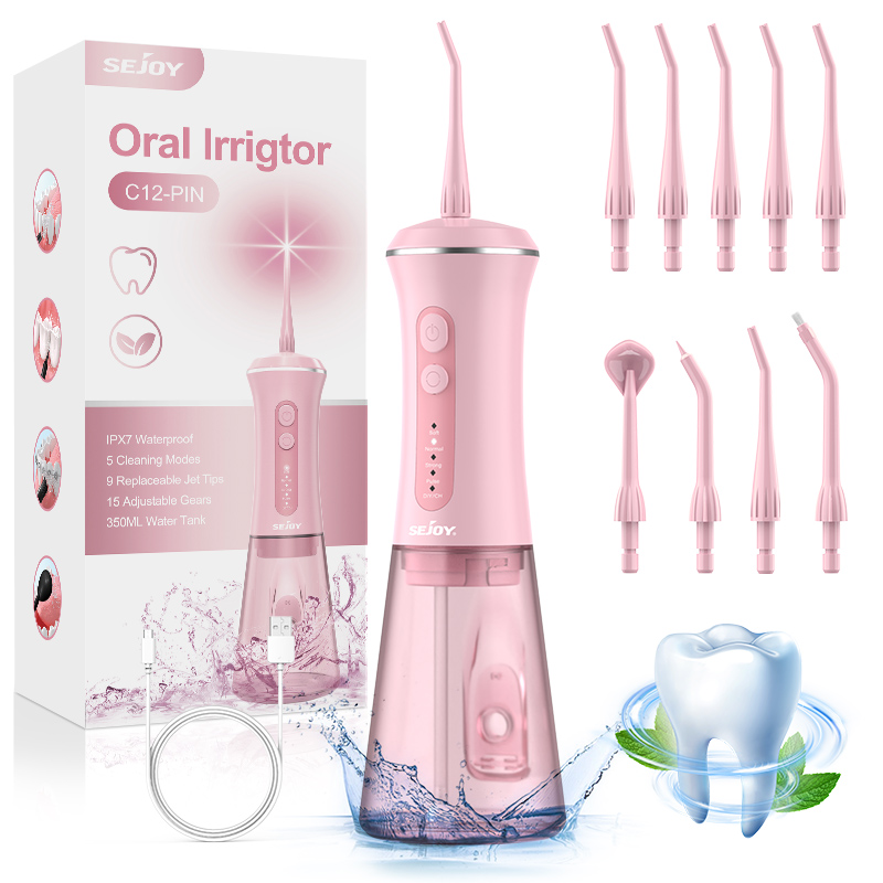 Upgrade your oral hygiene routine with the Sejoy Portable Oral Irrigator, a powerful and versatile water flosser designed to provide a deep and effective clean. Whether you’re looking to remove plaque, improve gum health, or ensure your braces and implants stay clean, this irrigator is the perfect solution. Featuring 9 interchangeable nozzles, 5 adjustable modes, and a 350ml water tank, it offers customizable and precise care for every individual. With its IPX7 waterproof rating and portable design, you can easily take it with you wherever you go, ensuring fresh and clean teeth at home or on the move.