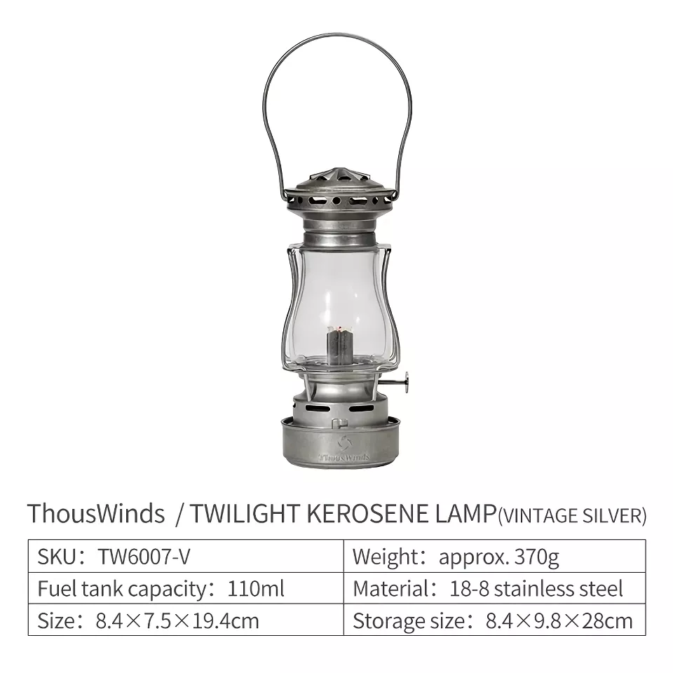 Embrace the spirit of outdoor exploration with this reliable and stylish oil lamp. Its retro-inspired design, efficient kerosene fuel system, and sturdy stainless-steel build make it a must-have for anyone looking to create unforgettable outdoor experiences. Bring vintage charm and dependable lighting to your next adventure.