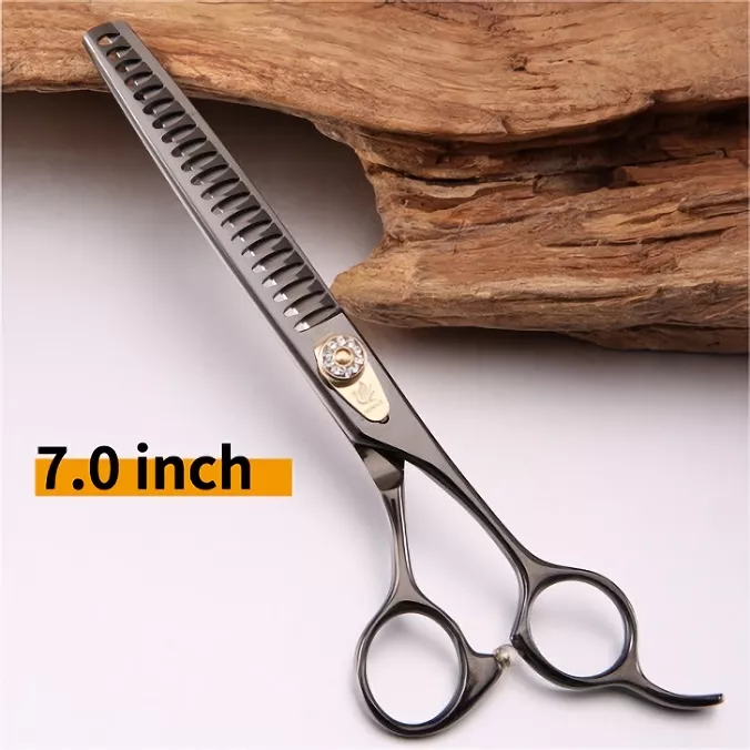 Elevate your pet grooming skills with our Professional Titanium-Coated Thinning Shears. Designed specifically for dog grooming, these shears are a must-have for any pet owner or professional groomer looking to achieve a polished, natural look. With a choice between 7-inch and 7.5-inch sizes, these scissors offer the precision and control needed to blend and thin your dog’s coat effortlessly. The titanium coating not only adds durability but also gives the shears a sleek, stylish finish that stands out in any grooming kit.