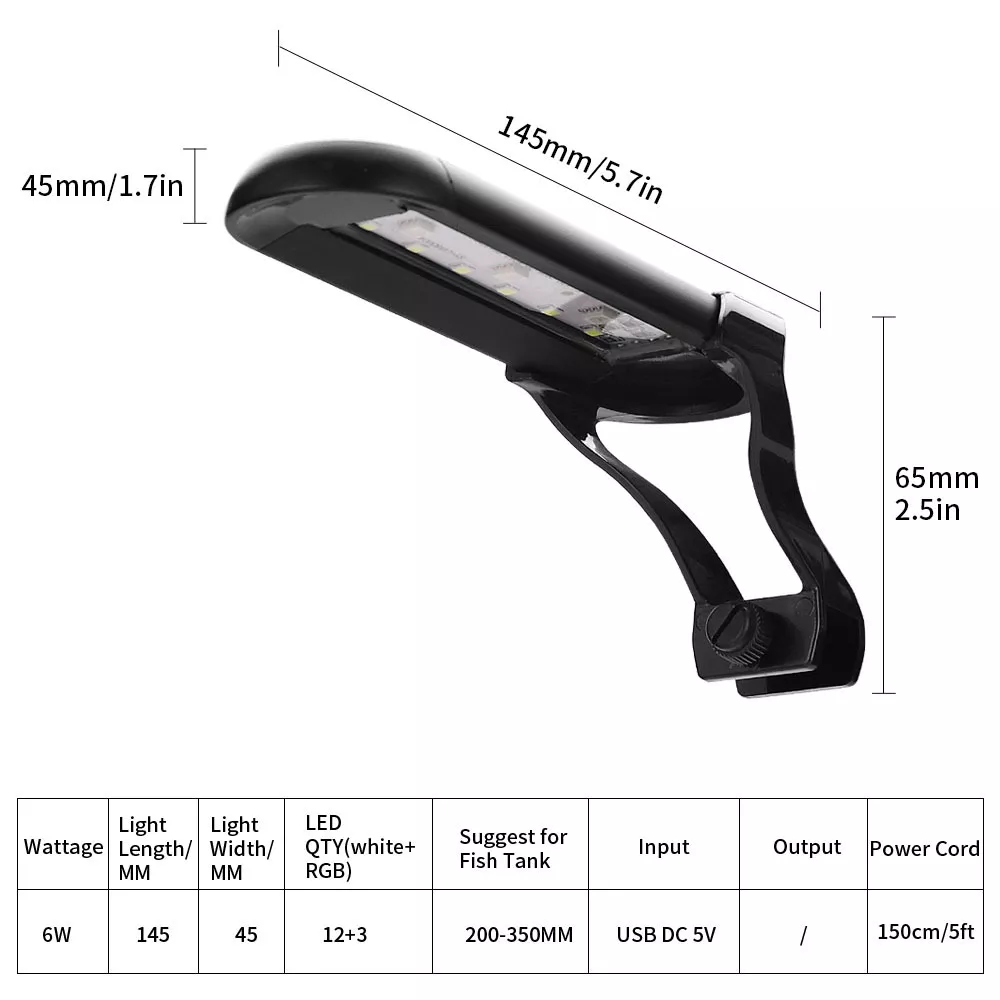 The USB Clip-On Aquarium Lamp stands out for its blend of functionality, style, and ease of use. Its unique fish fin design not only looks great but also ensures optimal heat dissipation, prolonging the life of the lamp. The ability to switch between 14 different lighting modes allows you to customize the look and feel of your tank, creating a personalized aquatic environment that your fish will love.