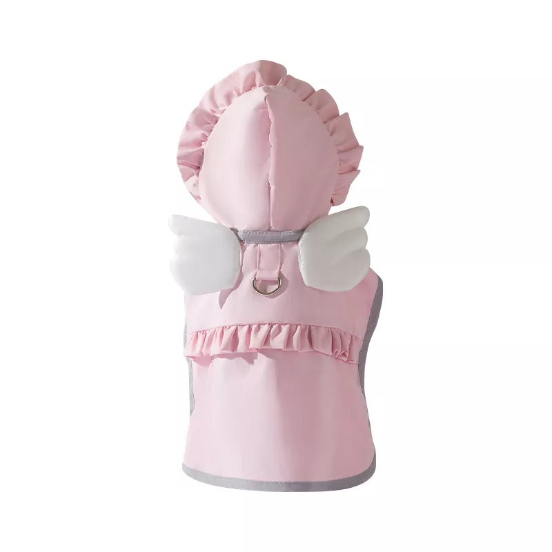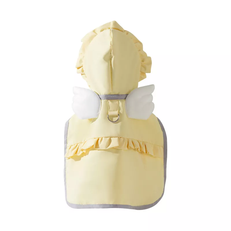 Our raincoat features a convenient cape design, making it incredibly easy to put on and take off. No more struggling with complicated outfits—just slip it over your dog’s back, and you’re ready to go! Plus, with the included tow buckle, attaching a leash for a walk is more convenient than ever. This makes the raincoat not only functional for wet weather but also ideal for travel, ensuring your dog stays dry on the go.