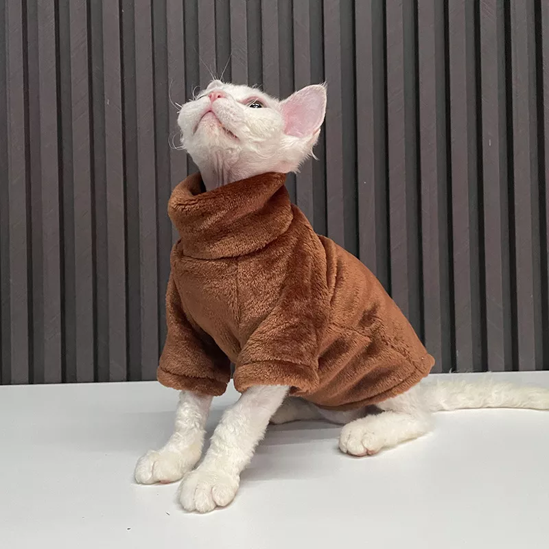 • Elegant Turtleneck Design: The turtleneck provides additional coverage, keeping your pet’s neck and chest warm, making it an ideal choice for hairless cats and small dogs.