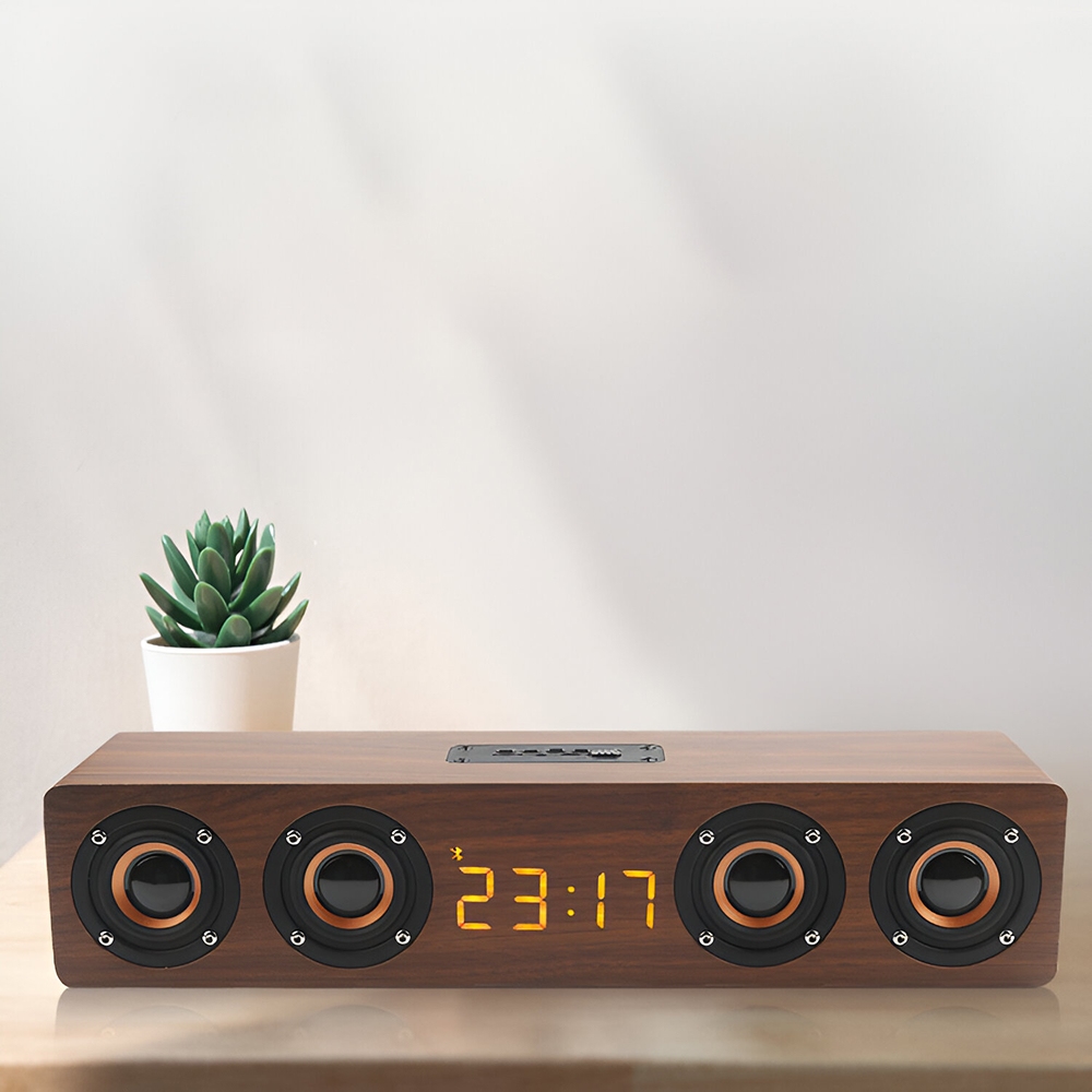Rechargeable Wooden Bluetooth Alarm Clock with Subwoofer & FM Radio